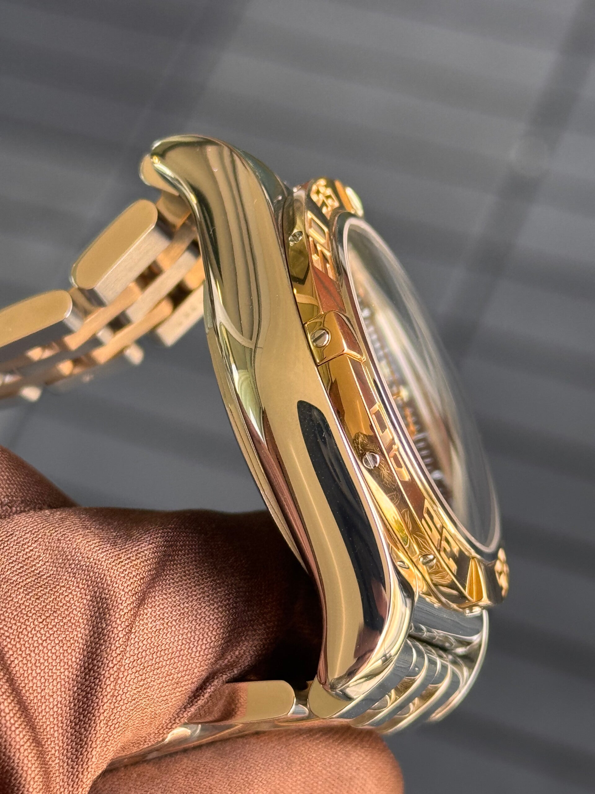 Uitgevoerd met een schitterende zwarte wijzerplaat, en vervaardigd uit staal met 18K Rosé gouden accenten, voor een prachtig contrast🌟