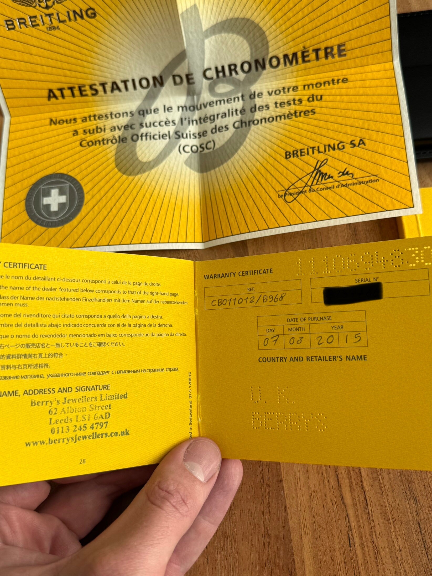 De Chronomat is Engels geleverd op 7 augustus 2015, en komt compleet met de originele doos en papieren.